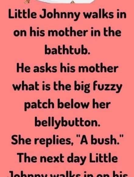 Johnny asked his mom about the hair on her belly, and she called it a “bush.”