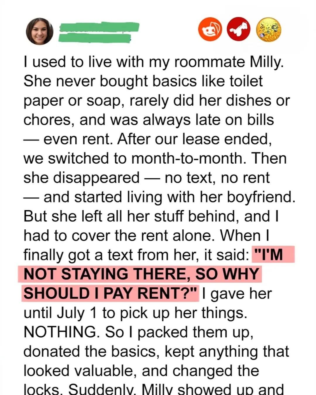 When Milly ditched our apartment to live with her boyfriend, she didn’t even have the decency to pay her half of the rent. I texted, I called, I waited—but she ghosted me like I didn’t exist. Meanwhile, her clutter sat in every corner of our home while I covered her bills. By July, I’d had enough.