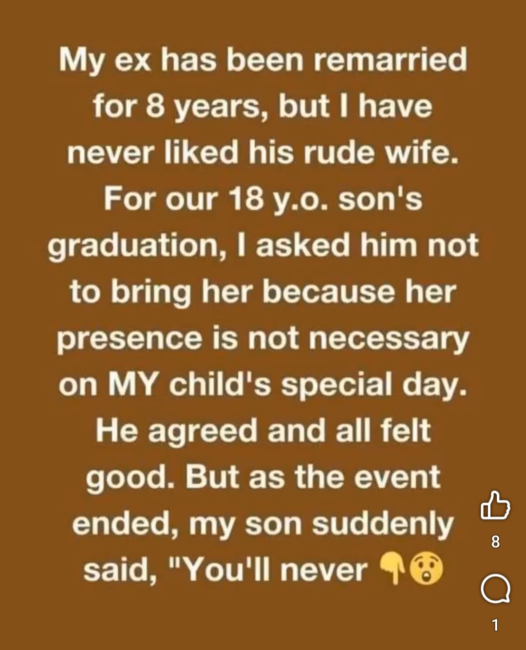 For our 18-year-old son’s graduation, I asked him not to bring her because her presence wasn’t necessary on my child’s special day.