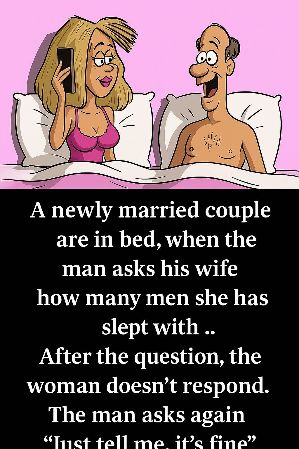 A newlywed couple is lying in bed when the husband asks his wife how many men she has dated. She doesn’t respond and just stares at the ceiling.